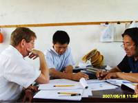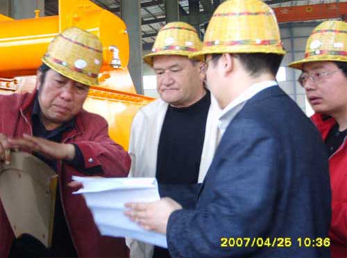 公司領(lǐng)導與客戶商討技術(shù)問題 | 公司領(lǐng)導與國外客人進行技術(shù)交流 | 車間一隅 |