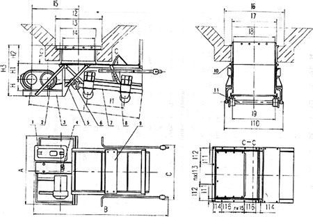 1、減速機(jī) 2、電動(dòng)機(jī) 3、傳動(dòng)平臺(tái) 4、聯(lián)軸器 5、H形架 6、連桿 7、給煤槽 8、閘門(mén) 9、機(jī)架 10、漏斗 11、托輥